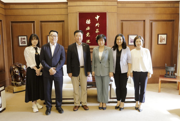 5月23日,校党委书记周红蕾会见了著名黄梅戏表演艺术家吴琼女士,双方就黄梅戏艺术的传承与发展、津派文化的国际传播等话题进行了深入交流。周红蕾对吴琼的到来表示热烈欢迎,并介绍了学校作为“天津市津派文化国际传播基地”在推动中华优秀传统文化走向世界方面所做的努力,强调黄梅戏作为我国重要的非物质文化遗产,承载着深厚的文化底蕴,此次即将举办的戏迷见面会,旨在让更多中外师生和戏迷深入了解黄梅戏的独特魅力,促进文化交流与融合。吴琼对学校的热情接待表示感谢,高度评价学校在文化传承与国际传播方面的工作,表示黄梅戏需要在新时代不断创新发展,天外为黄梅戏提供了与国际文化交流的平台,对于推动黄梅戏走向世界具有重要意义,期待今后与学校开展更多合作。会见后,吴琼简短地为留学生教学黄梅戏,让他们初步领略了这一中国传统戏曲文化的独特魅力,激发了留学生对中国传统文化的兴趣。教学结束后,我校举办“吴琼主演传统黄梅戏《女驸马》《梁山伯与祝英台》媒体发布会暨观众见面会”。本次见面会吸引了天外60余名留学生及外教、京剧社10余名学生以及50余名戏迷参加,现场气氛热烈,黄梅戏的袅袅余音在百年学府中回荡,向世界展示着中华优秀传统文