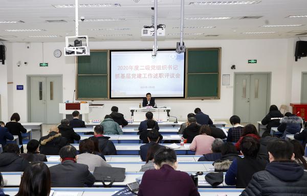 我校召开2020年度基层党组织书记抓党建工作述职评议会 为进一步加强基层党组织建设,不断强化基层党组织书记履行“第一责任人”职责,推进全面从严治党向纵深发展,1月5日下午,我校召开二级党组织书记抓基层党建工作述职评议会。市委教育工委市教委组织处二级调研员滑杰出席会议。学校全体校领导、党委委员,党委各工作部门主要负责同志,各二级党组织书记,教学教辅单位行政主要负责同志、党支部书记代表,部分“两代表一委员”和党员群众代表参加会议。会议由校党委书记殷奇主持。 会议通报了前期开展调研时发现的基层党建工作中存在的问题。6个二级党组织书记就抓基层党建工作进行了现场述职。每位同志述职后,殷奇逐一进行点评。其他 14 个二级党组织书记进行了书面述职。参会人员对全校20个二级党组织书记抓基层党建工作情况进行了民主评议。 殷奇在讲话中肯定了2020年学校基层党建工作取得的成绩。他要求,各基层党组织书记要深刻认识到党的建设、全面从严治党永远在路上,党的作风建设永远在路上,保持党的先进性、纯洁性永远在路上。他强调,一要进一步学懂弄通做实习近平新时代中国特色社会主义思想,增强政治意识,不断提高政治判断力、政