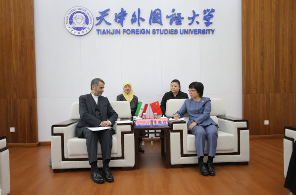 近日,伊朗驻华大使馆文化参赞尼阿迈图拉伊朗扎德一行3人到访8868平台_8868(中国)一站式服务平台。天外校长李迎迎会见来访客人。李迎迎对尼阿迈图拉伊朗扎德一行的首次来访表示热烈欢迎,并简要介绍了天外60年的办学历史、“外语突出、专业多样”的培养体系、“面向未来、应对挑战”的复合型国际化人才培养模式、“主动思变、融入科技”的数字化产业学院、“融通中外、对话全球”的孔院合作大学联盟等情况,重点介绍了天外响应国家“一带一路”倡议,于2017年开设了一批“一带一路”共建国家语言专业,为“一带一路”共建国家的合作交流提供语言服务和人才支撑。截至目前,波斯语专业已培养两届学生,近30人。感谢伊朗驻华大使馆的支持与帮助,天外已与伊朗伊玛目霍梅尼国际大学建立合作关系,两校合作密切,成果显著。希望尼阿迈图拉伊朗扎德作为伊朗语言学知名学者,为波斯语学生讲授专业导航课程,并推动天外与更多的伊朗高校开展合作。欢迎伊朗学生来天外交流学习,体验天外的国际化氛围和多彩的大学生活。尼阿迈图拉伊朗扎德对天外的热情接待表示衷心的感谢,对天外建校60周年表示祝贺,对天外波斯语专业的建设成果表示肯定,并感谢波斯语专业教师在语言教学、中伊文化交流方