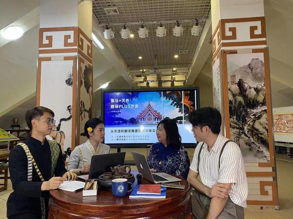 5月18日晚,由北京策马翻译和亚非语学院联合举办的“策马X天外”翻译PLUS沙龙系列直播首播在逸夫楼中华文化体验室如期开播。首播以“从非遗和翻译角度探索中泰文化差异”为主题,沙龙主理人、策马集团副总裁助理、策马大学生在线实习公益项目中心常务副主任、中华口/笔译大赛(联合国官方支持)组委会秘书处副秘书长郭艳卿,沙龙联合主理人、策马集团独家译训师、外交部翻译司前高级翻译、美国蒙特雷国际高级翻译学院访问学者韩秉秦,以及沙龙特邀嘉宾、我校亚非语学院泰语专业负责人岩温香、教师牛宛若,带领观众从非遗角度探索中泰风俗文化差异,从翻译角度探索中泰文化翻译差异。直播从泰语俗语翻译切入,由我校两位老师对泰国的节日、民俗、饮食等进行介绍。策马翻译两位主理人以中国的非遗民俗文化与之对比,并以习语翻译为例带领网友享受精彩的中泰文化盛宴。直播过程中,观众互动热烈,人类宝贵的精神财富在交流中涌动体现。“策马X天外”翻译PLUS沙龙系列直播是校企深化合作的具体体现,也是校企合作的新尝试。首播的顺利完成,为其他语种直播提供了借鉴参考,同时,系列直播也将为校企协同育人、产学研融合提供更广阔的平台。(内容审核/暴士蕊 窦文