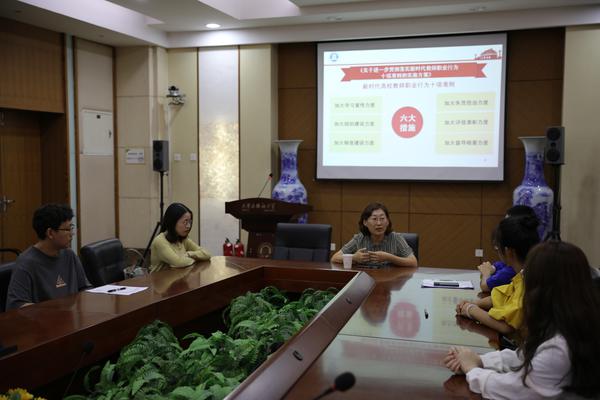 9月14日下午,欧洲语言文化学院在逸夫楼莎翁厅组织全体教职工开展新学期“师德必修课”学习。学院党委书记安娜、副院长史亚军分别面向全体教职工、新入职教师和辅导员,讲授了师德教育专题讲座。史亚军以“新修订《教育法》的解读”为题,从《教育法》的修订过程、修订内容和修订的重要意义几方面做了系统梳理和解读。他强调,此次教育法修订,是贯彻落实党的十九大精神、全国教育大会精神的重要举措,是对教育基本法律制度的进一步完善。修订的五个条款,健全了“培养什么人、怎样培养人、为谁培养人”的法律规范和制度要求,对构建德智体美劳全面培养的教育体系、推动教育高质量发展意义重大。安娜对学院新入职的五名教师进行了师德专项培训,详细讲解了我校关于师德的相关文件要求以及“新时代高校教师职业行为十项准则”,要求新教工注意身份角色的转变,发挥好学为人师行为世范的作用,牢记立德树人的教育初心和使命,做学生的良师益友,在传道受业解惑的同时,促进学生健康积极的世界观、人生观、价值观的塑造。学院高度重视师德教育工作,本学期开学首次全体会上,学院纪委书记韩菲面向全体教师通报了教育部曝光的8起违反教师职业行为十项准则典型案例。在师德宣传