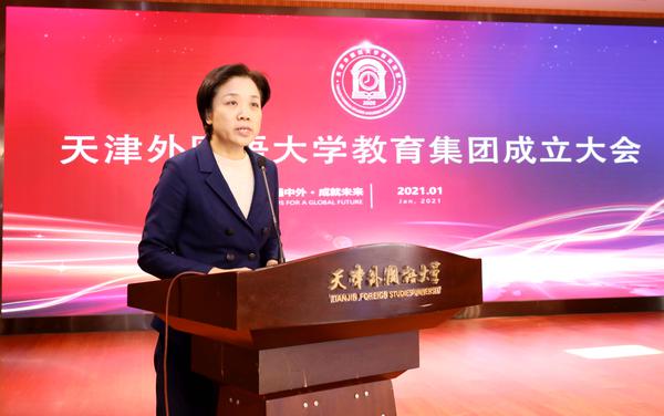 孙惠玲对教育集团的成立表示热烈祝贺。她指出,外大组建教育集团是适应新时代经济社会发展的新要求,满足人民群众对优质基础教育资源的期待,深化教育改革新实践的有益尝试,是促进优质教育资源普及化的重要途径,是促进基础教育均衡发展的有力举措。她对天外教育集团提出三点要求:要高起点、创品牌,为天津市优质基础教育均衡发展工作开创新局面提供有力支撑;要强管理、深融合,树立“合作共赢”意识,促进集团可持续健康发展;要聚全力、谋发展,使集团效应最大化、最优化,为天津乃至国家基础教育事业发展做出更大的贡献。