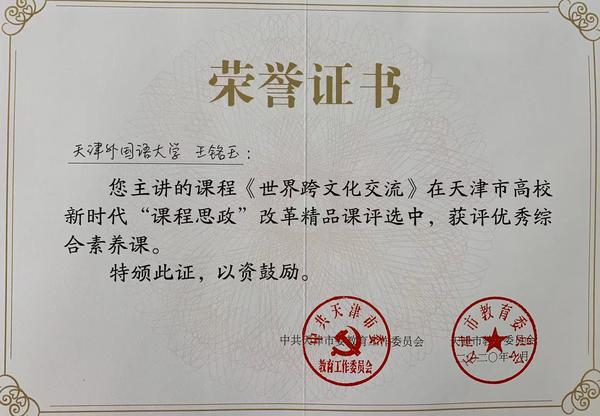 组织校领导、中层领导干部讲授形势政策课、思政课38场,承办“习近平新时代中国特色社会主义思想对外传播研究”学术研讨会,开展信仰大讲堂活动,邀请“时代楷模”曲建武、抗疫英雄王毅、新时代最美奋斗者王辅成等作报告。推进“课程思政”建设,以“一赛两评两汇编”为抓手,深入挖掘每门课程中蕴含的思想政治元素,形成专业课教学与思想政治理论课教学紧密结合、同向同行的育人格局,《世界跨文化交流》课程获评天津市“课程思政”改革优秀综合素养课。