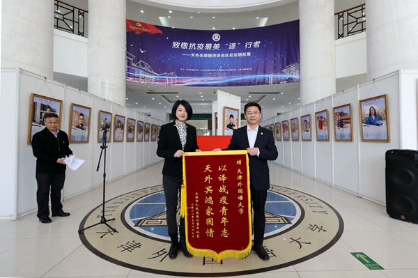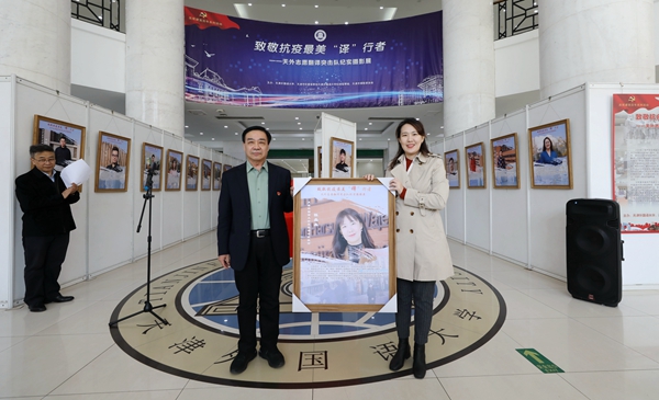 为开展好党史学习教育,从党的伟大奋斗历程中汲取智慧和力量,弘扬抗疫精神,传承优良作风,3月29日下午,我校在马场道校区举办党史学习教育系列活动“致敬抗疫最美‘译’行者------天外志愿翻译突击队纪实摄影展”启动仪式。天津市摄影家协会秘书长包静,市外办协调处四级调研员、市外办疫情防控口岸组志愿者服务负责人边元元,团市委社会联络部副部长张晓萌,我校党委书记殷奇,校党委副书记、校长陈法春,校党委副书记胡志刚,派驻纪检监察组组长于富来出席活动,党委宣传部、校团委负责同志,天外志愿翻译突击队师生代表参加活动。活动由校党委常委、宣传部部长郭太主持。