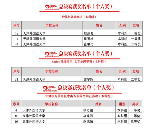 6月16日,第十一届全国大学生计算机应用能力与信息素养大赛全国总决赛在北京落下帷幕。我校通识教育学院计算机教研室选拔指导的学生代表队,在全国总决赛阶段个人赛的三个赛项中,取得了一等奖3项、二等奖3项、三等奖1项,并以优异成绩斩获了“计算机基础”(本科组)团体一等奖、“计算机与信息技术类专业英文词汇”(本科组)团体二等奖的好成绩。