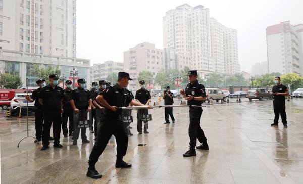 演练之前,河西分局巡特警反恐大队警官强调了开展防暴恐知识培训及演练的目的和重要性,从爆炸、砍杀等常见暴恐事件的特点、处理方式着手,现场展示并讲解了钢叉、盾牌、防暴背心、防割手套等常用警务器材的功能和使用方法。演练过程中,现场模拟了刀斧砍杀等情景下的防暴恐实战演练,全面演练了先期处置、值班人员发出警报、上报值班领导、拨打110、应急防暴组先期处置制服暴恐分子等步骤。特警队员在演练过程中表现出的专业素养和高超本领,让安保队员们大开眼界,受益匪浅。