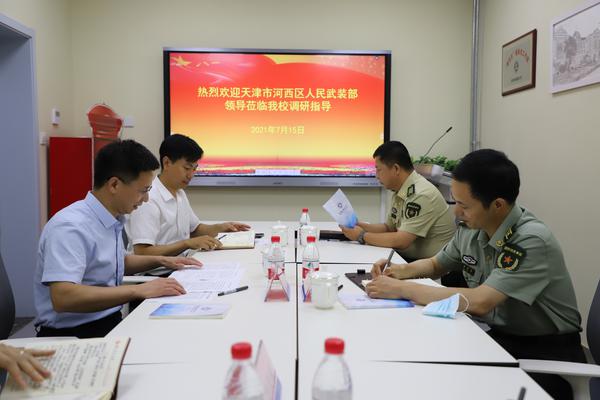 7月15日下午,天津市河西区人民武装部部长黄孝喜、政委邢勇一行到我校调研走访,校党委副书记胡志刚出席调研活动,校武装部负责人陪同参加。