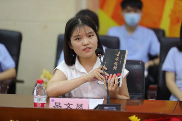 座谈会以“全校师生共读一本书”的形式,一起分享“新生书单”阅读心得。从《数学之美》到《月亮和六便士》,从《习近平在正定》到习近平同志《论中国共产党历史》,来自不同学院的11名同学分享了他们的阅读心得,结合自身成长经历畅谈如何更好地适应大学生活、涵养爱国情怀。“繁霜尽是心头血,洒向千峰秋叶丹。吾辈自需接过时代发展的接力棒,传承红色基因,汲取前行力量,以青春之我、奋斗之我为祖国建设添砖加瓦。”欧洲语言文化学院王一晴同学深情分享了《论中国共产党历史》的读后感。