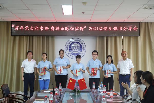 百年党史润书香,赓续血脉强信仰。这是一次加强学风校风建设的新生座谈会,也是一场凝聚“天外人”读书智慧的“书单”分享会,更是一堂充满新时代爱国最强音的“思政课”。多年来,学校高度重视以“天外书单”为依托的学风建设,成立由校领导亲自担任组长的领导小组,融思政教育、学风创建、管理服务、文化育人于一体,构建“三全育人”特色创新平台,《新生书单》辐射9届新生20000余人,打造 “天外书单”主题区、打通“有声图书馆”,获评教育部首批思政工作精品项目,《光明日报》、天津电视台以“读书有榜样,青春在飞扬”为题予以专题报道。