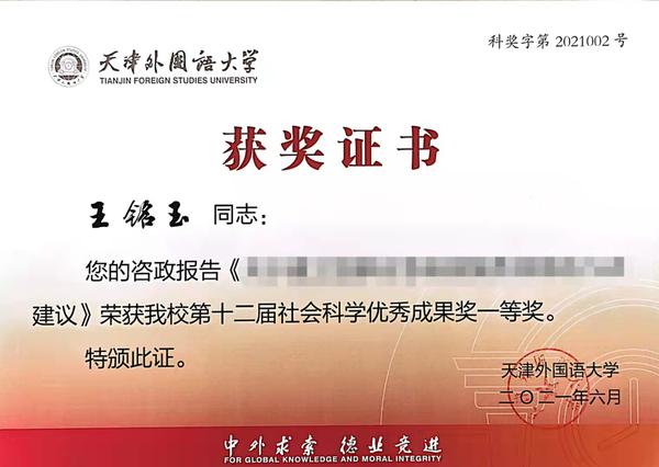 由王铭玉教授牵头,联合我校十名外语教授于2020年4月6日提出的内参研究报告得到国家相关部门和天津市委市政府的高度重视。根据本报告,天津市应急外语服务“一基地三库”于2020年7月16日在我校成立,为国家应急语言服务体系建设做出了重要贡献。