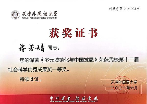 译著名称《多元的都市化と中国の発展》(ISBN: 978-4-8188-2510-9),原著名称:《多元城镇化与中国发展》,原著作者:李强;译著字数50万字,日本经济评论社2018年10月出版。