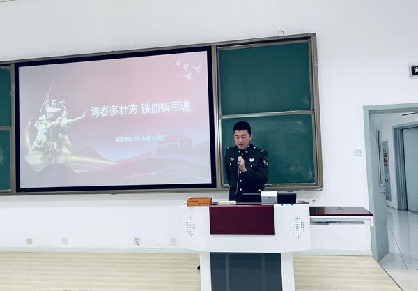 来自2020级英语教育方向研究生黄鸿鹰和2020级本科生杜润旺分别就自己的军营生活和当兵感悟进行了回顾和分享,谈到了军营生涯带给自己的成长,让他们磨炼了自己的意志,有勇气和能力去面对人生的挑战和困难,以自己入伍的经历与收获,鼓励同学们到军营中体验别样青春,向同学们发出了投身军营、携笔从戎的号召。