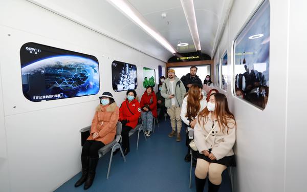 走进馆内,“新时代·新思想”“沿红路·寻初心”“明明德·晓律法”“立匠心·育匠人”四大教育板块,一一在同学们眼前精彩呈现。师生们边听讲解边参与其中,一路走一路看一路实践。精彩的互动环节吸引了我校国际教育学院10余名留学生和研究生参与其中。他们有的坐进仿真模拟的“复兴号”高铁列车感受“中国速度”,有的奋力骑行发电让象征“绿水青山就是金山银山”的“大树”绿意盎然,有的驻足展览观看新时代中国的巨大变化,在“体验式”和“沉浸式”的教学中感受中国智慧、中国方案、中国力量。