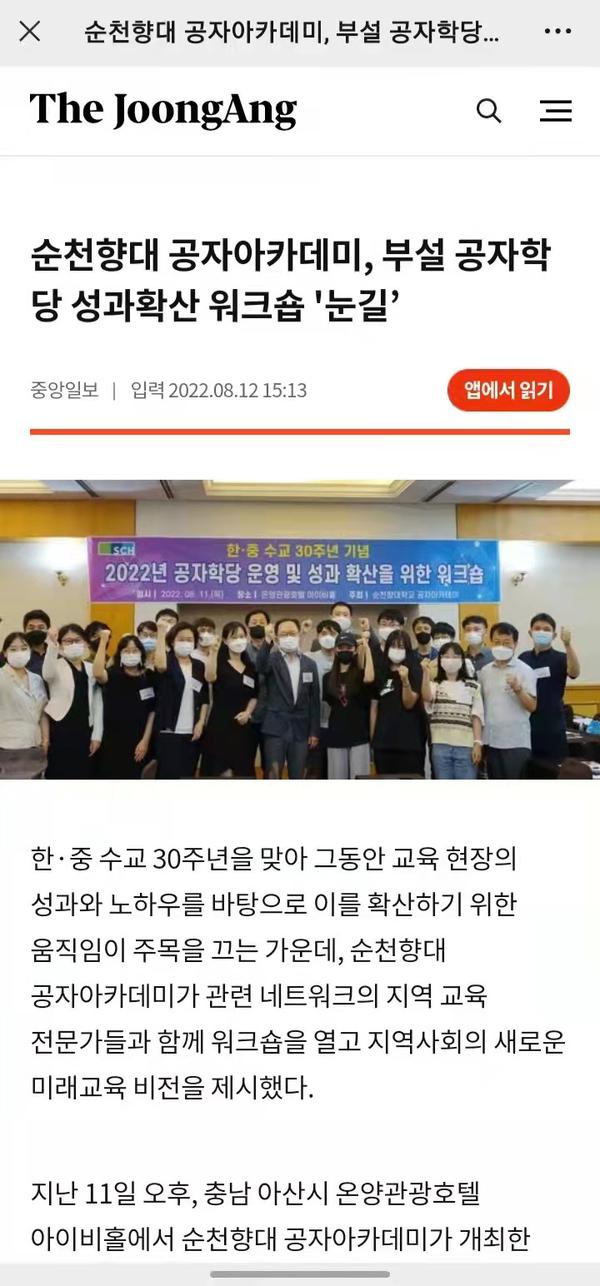 为庆祝中韩建交30周年,近日,韩国顺天乡大学孔子学院成功举办“孔子课堂运营及成果交流会”。会议展示了顺天乡大学孔子学院下属牙山高中、天安高中、牙山市青少年文化馆三所孔子课堂的运营成果,分享了孔子课堂建设过程中孔子学院所发挥的作用,探讨了如何更好地服务中韩民间交流,以及孔子课堂未来运营发展方向等问题。牙山高中孔子课堂负责人田炳范,天安高中孔子课堂负责人金吉溶,牙山市青少年文化宫孔子课堂负责人裵正璲,孔子课堂师生代表以及孔子学院全体教师等50余人参加了本次交流会。