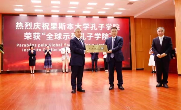 仪式上,赵灵山、路易斯·费雷拉、陈法春续签了三方合作共建里斯本大学孔子学院协议。赵灵山在现场为里斯本大学“全球示范孔子学院”授牌,里斯本大学孔子学院葡方院长若昂·巴雷罗、中方院长王锦程接牌。