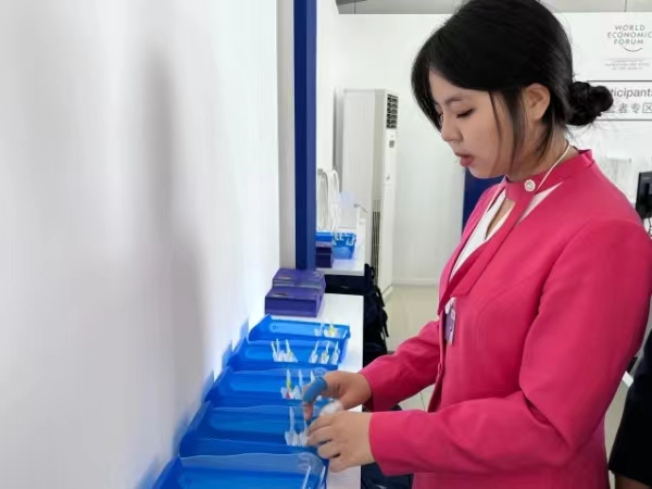 研究生志愿者贾旭对于志愿服务的感触更深,他已连续参与了第七届世界智能大会和本次达沃斯论坛的志愿服务。从幕后到台前,从物资管理到交通保障,变的是工作内容,不变的是青年志愿者的初衷和热情。贾旭表示,达沃斯论坛志愿服务是对自身语言能力、统筹力和执行力的多重考验,他也一定会积极发挥自身优势,善于倾听、真诚服务,为每一位来宾提供更好的参会体验。