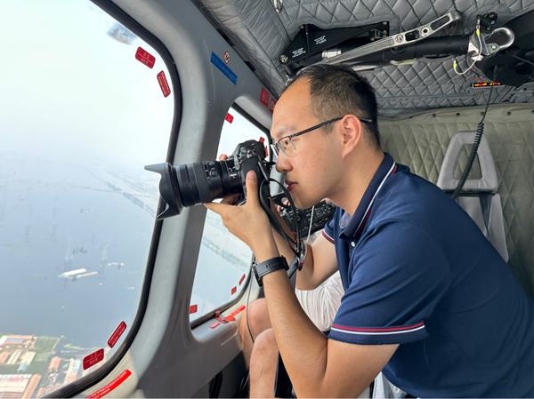 接到报道任务后,孙凡越第一时间赶往抗洪重心天津市静海县台头镇,跟随前线人员巡堤查险、彻夜在前方指挥部内蹲守待命,从撤离到万人昼夜抢险,再到空地联合排查防洪隐患,孙凡越始终坚守在抗洪一线。