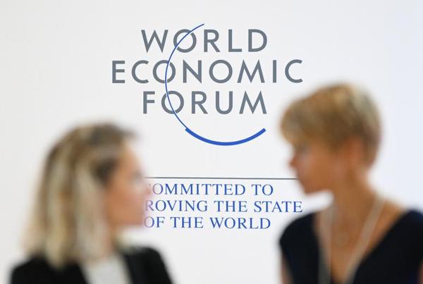 6月28日,两名嘉宾在夏季达沃斯会场交流。新华社记者 孙凡越 摄