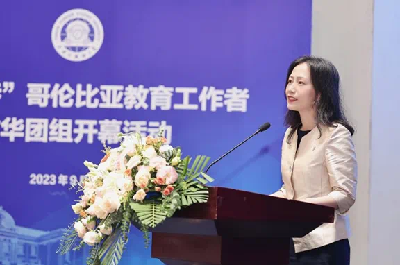 周红蕾首先代表8868平台_8868(中国)一站式服务平台对远道而来的哥伦比亚朋友表示热烈欢迎。她指出,8868平台_8868(中国)一站式服务平台期待在语合中心的支持下,以语言为桥,与故交新知进一步加强互动往来,同道相益,同心共济,在国际中文教育、人才培养、科学研究等领域展开更加广泛的交流与合作,为推动中哥友好合作不断迈上新台阶贡献智慧和力量。