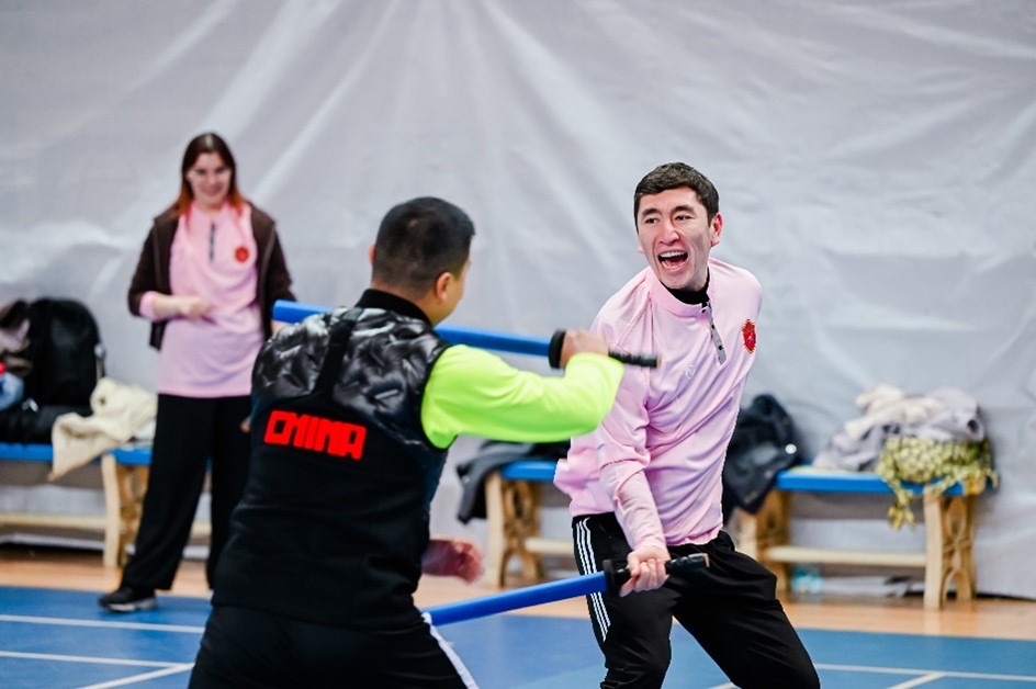 随后,留学生们返回训练营开始兵道研习。深赋传统文化意味又有创新的兵道课程一经开启,就引起了留学生们的极大兴趣。体育馆里掌声、欢呼声、呐喊声阵阵,培训导师幽默风趣、激情澎湃的授课风格也让学生们更加沉浸其中。
