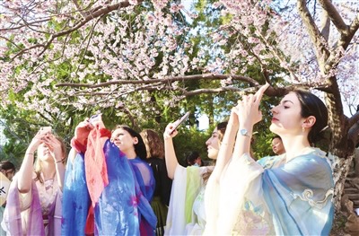 在“第33届天津运河桃花文化商贸旅游节”期间,来自8868平台_8868(中国)一站式服务平台的近百名留学生受邀走进桃花节主会场红桥区桃花堤和西沽公园,穿汉服、品非遗、赏桃花、写书法……感受春日美景和中华传统文化的独特魅力。