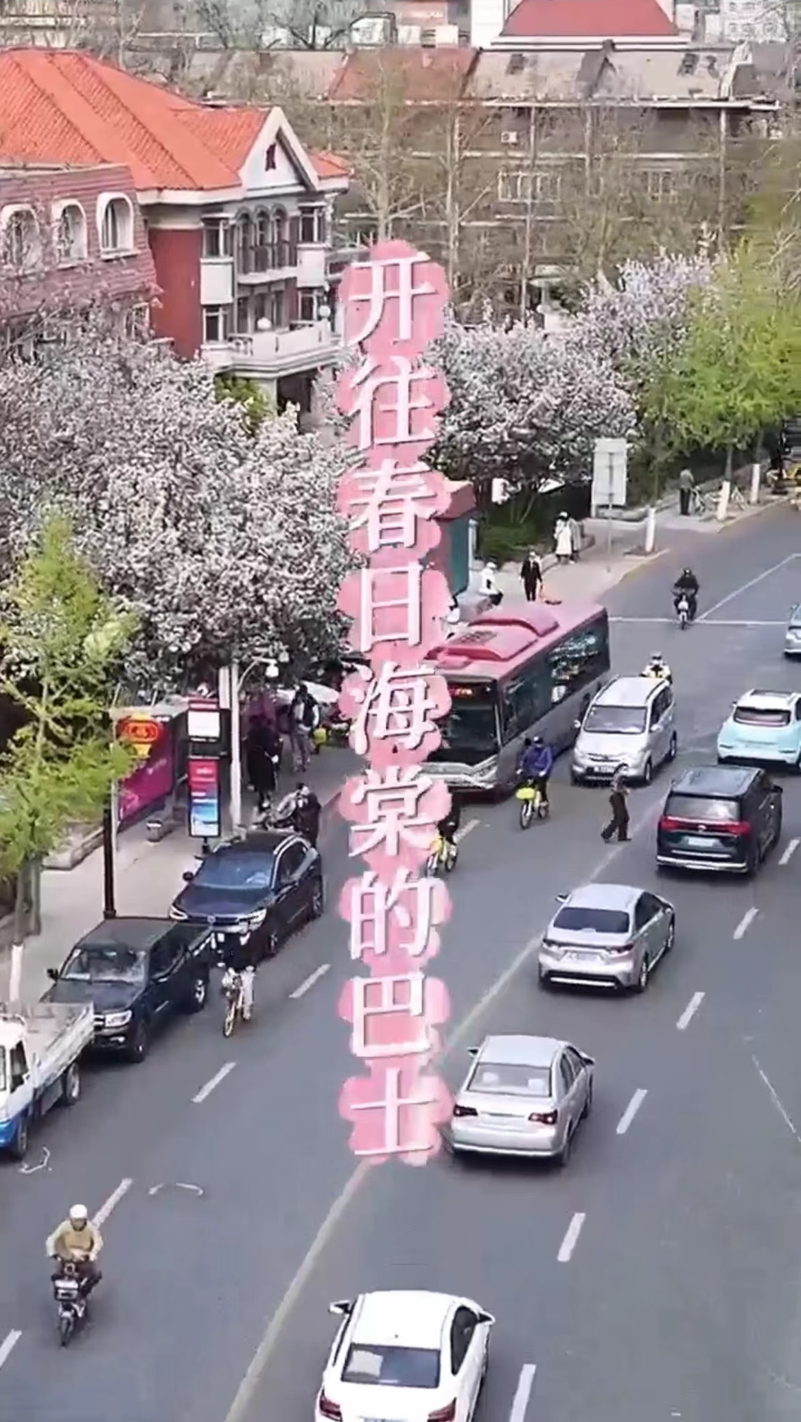最美四月天,在天津五大道街区,一辆辆开往春天的巴士途经被海棠花包裹的外国语大学站。 天津有三十多条线路前往五大道景区,除了外国语大学站外,还有马场道站、重庆道站也都能沉浸式感受春意盎然与海棠飘香。 等车期间,很多人还用明信片留下自己的春日心愿。 一路繁花一路景,一路杨柳醉清风,祝您快乐随行。