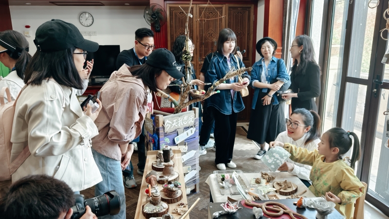步入校园,映入眼帘的是有着百年历史的英式建筑,也是幼儿园的文化地标。它被孩子们认真地描摹下来,作为独特的参会证、宣传海报等各处的主题元素。据优念睦南幼儿园总园长刘淑婷介绍,这次联合采访活动中参观幼儿园的各个环节,都由孩子们参与内容设计、参观安排,形成了一次师生共同参与的、生动的趣味活动。