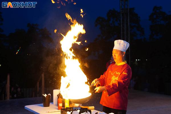 夜幕降临后,中国美食文化展示环节开始了,中国厨师将“火焰牛肉”搬上舞台,娴熟的手法和升腾的火焰让观众们惊奇不已,连连喝彩。紧接着,三条长达十米的舞龙登场,金色的龙鳞在灯光下闪耀,龙头龙尾的动态摆动将现场气氛推向顶峰,神龙所到之处人们激动得欢呼雀跃。