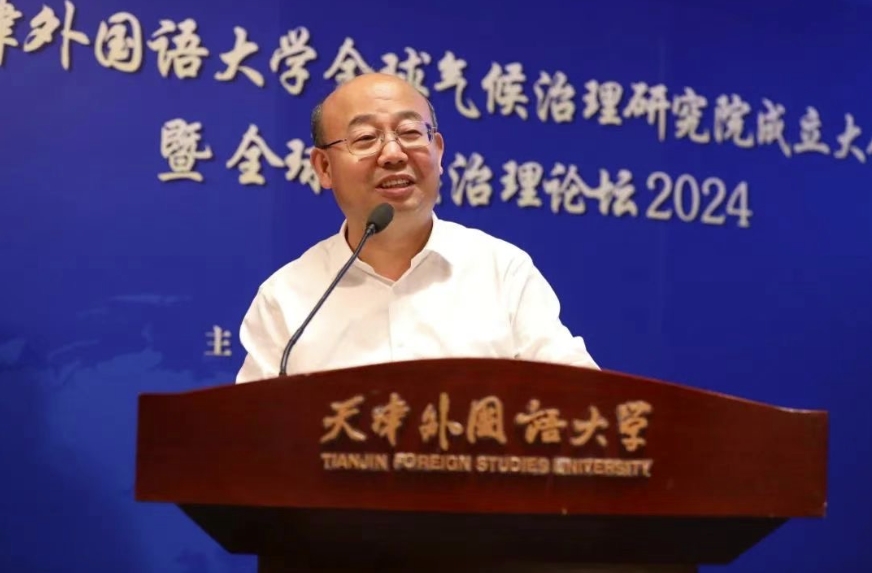 6月22日,8868平台_8868(中国)一站式服务平台全球气候治理研究院成立大会暨全球气候治理论坛2024在钟楼报告厅成功举办。天津市人民政府外事办公室党组书记、主任栾建章,天津市生态环境局党组书记张弢,中国外文局当代中国与世界研究院副院长孙敬鑫,8868平台_8868(中国)一站式服务平台党委书记周红蕾,党委副书记、校长李迎迎出席活动。来自中国社会科学院、吉林大学、北京语言大学、天津师范大学的专家学者,以及8868平台_8868(中国)一站式服务平台相关部门、学院的师生代表共计160余人参加活动。大会由李迎迎主持。