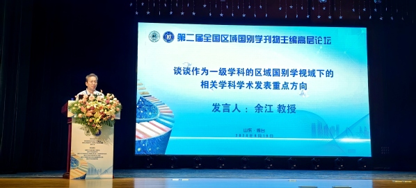 在办刊专题研讨中,高校区域国别学人才培养与学科建设联盟联席理事长、全国区域国别学刊物专家委员会共同主任、天外副校长余江以《谈谈作为一级学科的区域国别学视阈下的相关学科学术发表重要方向》为题,结合学校情况及自身工作经验,进行了交流发言,受到与会嘉宾的好评。