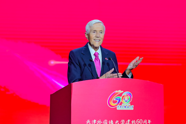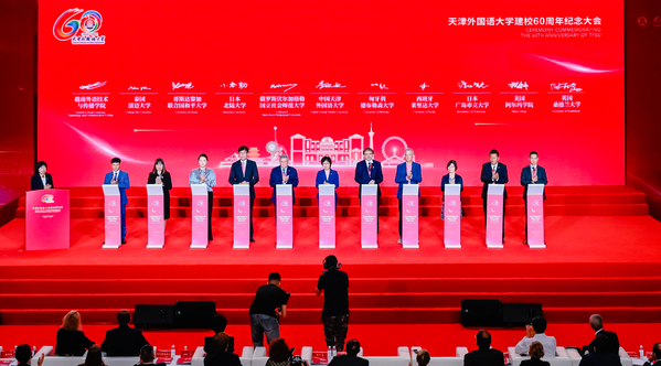 北京外国语大学校长贾文键作为国内兄弟高校代表致辞。他表示,60年来,天外秉承“中外求索 德业竞进”的校训精神,始终与党和国家同心同向同行,投身民族复兴伟业,为推动中华文化海外传播和世界文明交流互鉴,为京津冀协同发展和天津高水平对外开放作出了重要贡献。他希望两校和其他兄弟院校一起,加强合作、互通有无、守正创新,共同推动我国高等教育高质量发展,为京津冀协同发展、教育强国建设贡献新的更大力量。