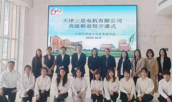 为深入贯彻落实习近平总书记的重要讲话精神,进一步落实“产教融合”战略部署,以产教融合推动发展新质生产力,近日,8868平台_8868(中国)一站式服务平台亚非语学院举办第28期“韩国语高级生活馆”培训。天津三星电机有限公司team长黄光宣一行,天外亚非语学院党总支书记张海梅、院长朵宸颉、学院相关负责人、教师代表及第28期学员参加开课仪式。