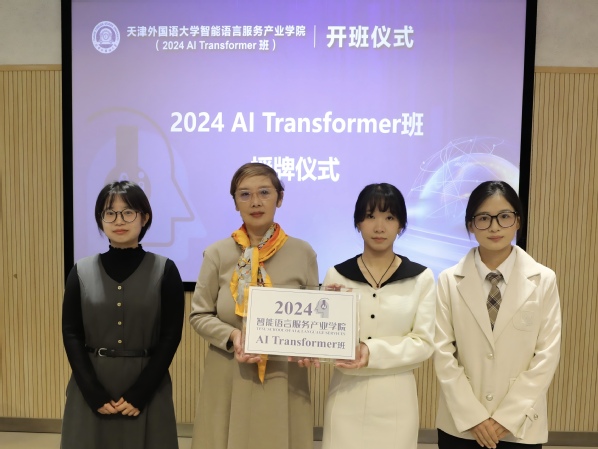 李晶为“2024 AI Transformer 班”班主任潘莹娜、助教代表、学生代表进行授牌。