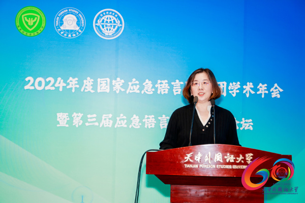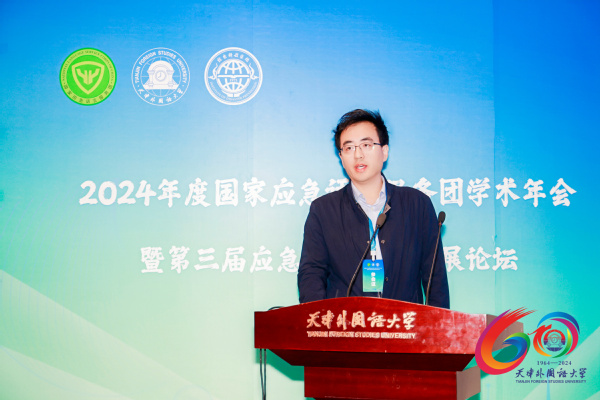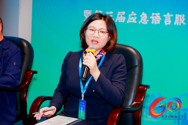 天津市应急外语服务研究院研究员张馨元分享了天津市应急外语服务研究院的成长历程,展示了多语种应急团队建设的产学研结合模式。