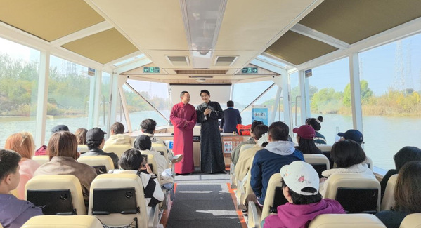 天津国旅作为本次活动接待方之一,还特意在游船上安排了独具天津特色的快板和相声表演,留学生们被快板清脆的节奏和相声演员幽默的段子深深吸引。表演过程中,演员们不仅展示了传统的快板技巧,还融入了现代元素,使得整个表演既保留了传统韵味,又不失时代感。外国青年们在快板的欢快节奏和“说、学、逗、唱”的包袱桥段中感受到了天津这座曲艺之乡的魅力,更亲身体会到了“哏儿都”的惬意开心与松弛感。