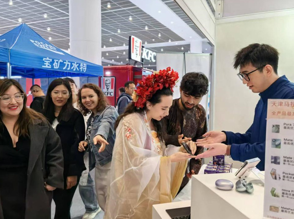 Les ambassadeurs culturels et sportifs internationaux visitent le stand de la Banque de Tianjin