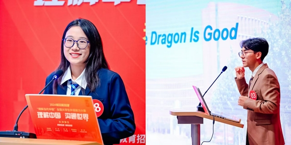 在2024年“外研社·国才杯”“理解当代中国”英语演讲赛项中,来自英语学院的学生严嘉欣、孙振皓以其流利的口语表达、清晰的逻辑思维以及富有感染力的演讲风格,赢得了评委们的高度评价,荣获一等奖的好成绩,并晋级全国总决赛。他们表示:“这次比赛不仅是一次语言能力的比拼,更是一次对中国文化的深刻理解和深入传播的机会。通过比赛,更加深入地了解了中国的发展历程和成就。”