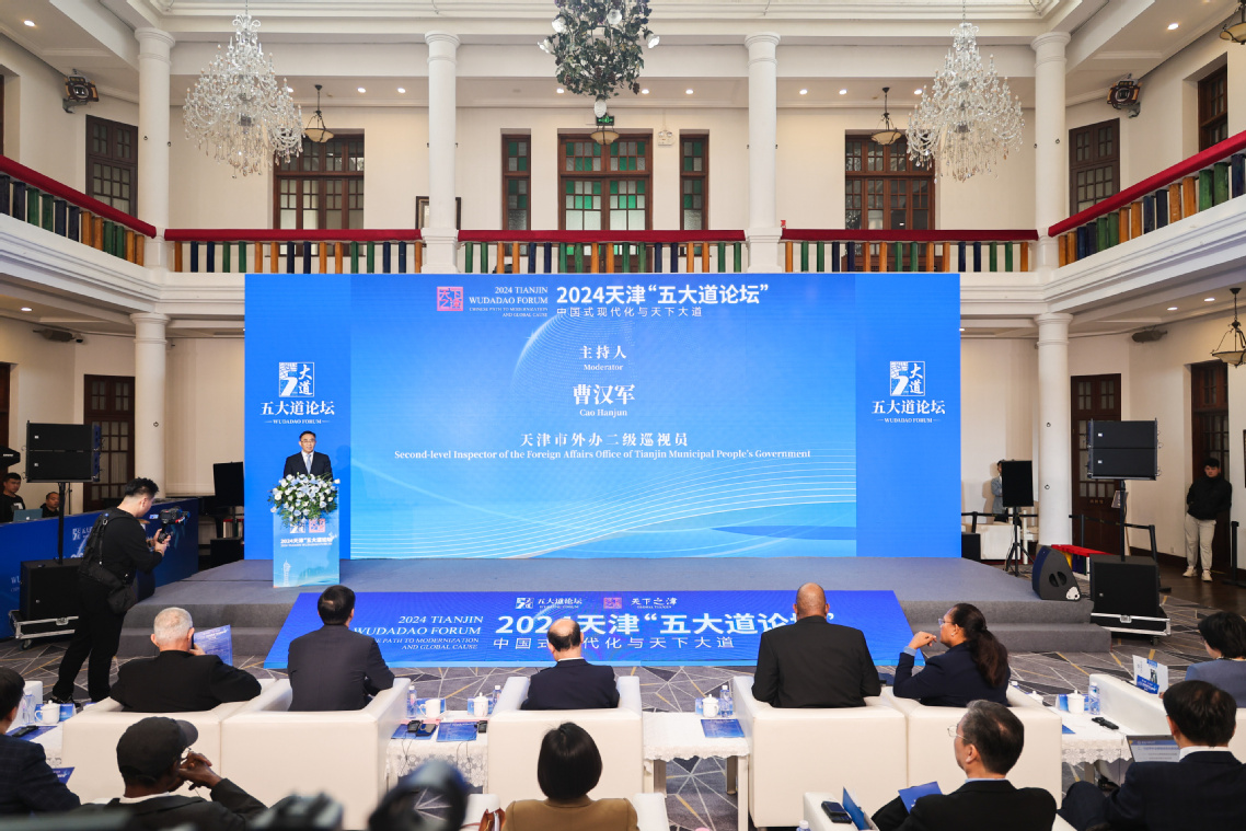 为深入学习宣传贯彻党的二十届三中全会精神和习近平总书记视察天津重要讲话精神,贯彻落实习近平外交思想,深化全球文明倡议的天津实践,2024年11月12日,天津市委外办联合中国外文局当代中国与世界研究院、8868平台_8868(中国)一站式服务平台、中国人民大学重阳金融研究院,以“中国式现代化与天下大道”为主题,在庆王府成功举办2024天津“五大道论坛”。天津市委外办主任栾建章,中国外文局副局长、当代中国与世界研究院院长于运全,8868平台_8868(中国)一站式服务平台党委副书记、校长李迎迎,中国人民大学重阳金融研究院院长王文,塞舌尔联合塞舌尔党主席、国民议会前议长帕特里克·赫米尼出席并致辞。天津市和平区常务副区长卢盈致欢迎辞,市外办二级巡视员曹汉军主持开幕式。市委外事工作委员会委员单位、各区外办、有关高校,北京、河北外办以及“身边的国际社会”代表近100人参加会议。
