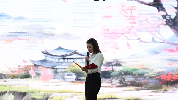 天外国际教育学院留学生辅导员赵伯杨、留学生李山迪表演了英文朗诵《再别康桥》、多语种版本的西游记配音等节目,与出入境管理局外语战队成员同台展演,将汇报演出的氛围推向高潮。