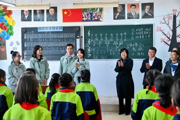 周红蕾高度肯定了支教团全体师生的工作,并向他们表示感谢。她指出,一是惊喜,对支教团队中成员们的快速成长感到由衷惊喜。从初入课堂时的青涩与紧张,到如今能够自信满满地站在讲台上,用生动有趣的方式引导学生,成长为能够独当一面的“小老师”,为当地教育工作注入了新的活力与希望;二是欣慰,对支教团队所付出的努力与取得的成果感到非常欣慰。支教团的成员们不仅在日常教学中倾注心血,更在课后了解当地学生们的需求与梦想,为他们提供力所能及的帮助,让少数民族地区的孩子们感受到了来自远方的温暖与关爱;三是自豪,对支教团所展现出来的青年学子的责任与担当感到自豪。支教团成员们为提高受援学校国家通用语言文字教学水平,为铸牢中华民族共同体意识和文化润疆贡献了“天外智慧”,用实际行动为少数民族地区的教育事业贡献了自己的力量。希望支教团全体师生在工作中,继续立足岗位,一如既往,再接再厉,努力工作,善始善终,在于田这块热土上贡献“天外”力量。