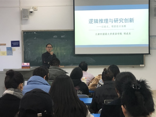 项成东教授讲座题为《逻辑推理与研究创新——以论文、项目设计为例》,结合项目论证撰写纲要,着重强调了逻辑推导与研究创新的关系,从选题逻辑、文献综述、理论分析等方面进行全面分享。