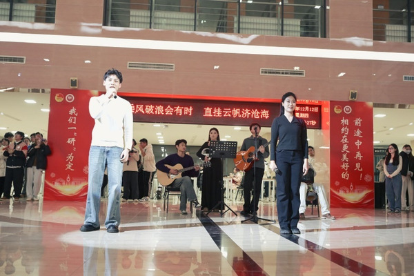考研前夕,天津师大在图书馆举行了一场暖心快闪活动,通过弦乐合奏《天空之城》、舞蹈《吉祥欢歌》、歌曲《不要慌,太阳下山有月光》和《夜空中最亮的星》等丰富多彩的惊喜活动为考生加油打气送祝福。学校精心准备了橙子、薯愿薯片、定制可乐等暖心大礼包,并在图书馆为考研学生赠送书签和祝福贺卡。各学部(院)深入走访考研学生宿舍,帮助考生舒缓备考压力、提振考研决心。