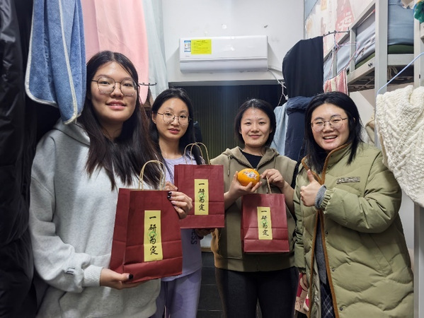 人工智能学院为考生们精心准备“考研加油包”。“心想事成”果冻橙、暖身更暖心的暖手宝、金榜题名的签字笔……每一份礼物都饱含着学院对考研学子沉甸甸的祝福和心意。