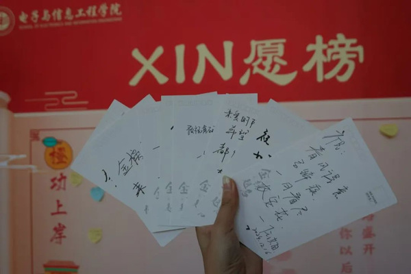 考试期间,学校用心为考生提供便利服务,校内各主要路口设置指引路标,各考试楼前树立入场流程标识和重要区域分布图。学校设立考生休息场所,食堂各窗口开放便利付款方式等。考前,计算机科学与工程学院把暖心礼包发放到考生们的手中。当考生们接过礼包的那一刻,感受到的不仅仅是一份物质上的礼物,更是来自学校、师长的力量与温暖。学院老师们还亲手书写了暖心明信片,看到明信片上鼓舞人心的话语,考生们仿佛听到了老师们情深意切的鼓励:“加油!你一定行!”