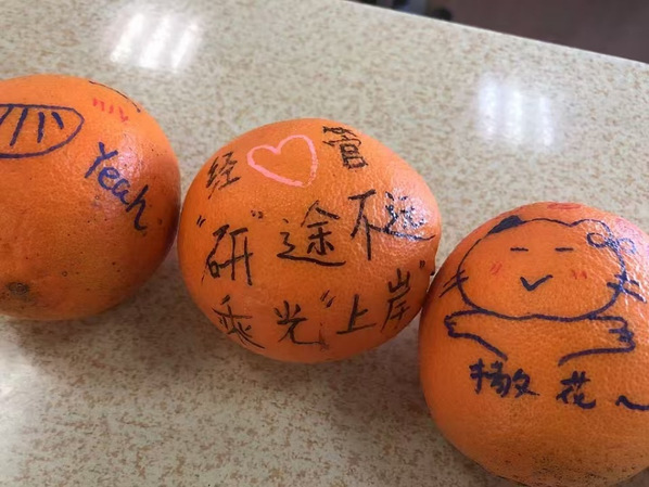 天津农学院经济管理学院于考前开展“一战‘橙’研,前‘橙’似锦”考研加油暖心活动。活动中,在校生代表向考研学子表达了诚挚的祝福,老师们对研究生考试的注意事项作了重点提醒,叮嘱大家调整好作息,以饱满的精神状态迎接挑战,并祝福每一位考生都能“橙”功上岸、心想事“橙”。活动最后,考研学子纷纷在橙子上写下祝愿。