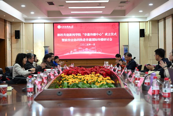 政校企协同推进非遗国际传播研讨会在逸夫楼莎翁厅举行,会议由马兰州主持。会上,专家学者围绕非遗传播与国际传播能力建设、非遗国际传播的理论和路径、非遗传播的跨学科特点、政校企协同推进非遗传播、非遗传承传播的现状和问题以及非遗的创造性转化和创新性发展等议题展开深入探讨,为政校企三方在非遗保护与传播方面的进一步合作奠定了坚实基础。