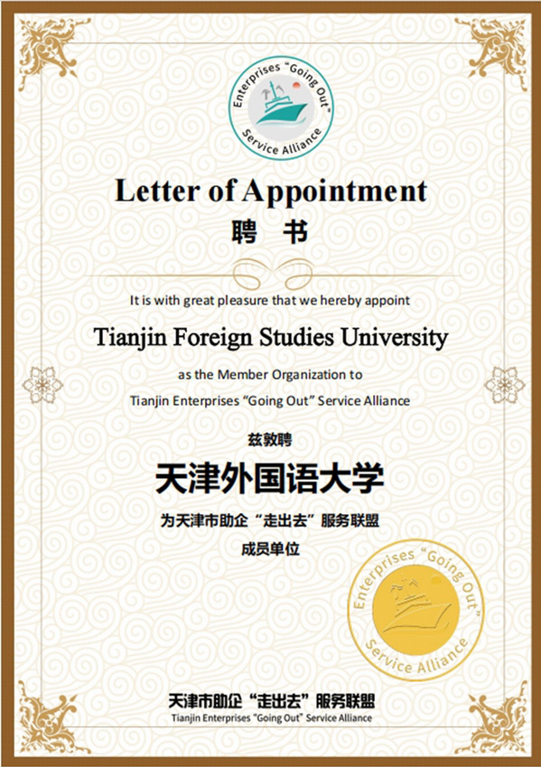 天外当选理事单位是学校积极发挥外语优势,培养跨学科复合型人才,主动服务国家和天津市经济社会发展的成果的体现。天外将助力联盟联结国内外政府、机构及各类商业资源,推动联盟作为天津企业“走出去”对外投资和海外拓展的智库建设,助力企业实现高质量与可持续的海外发展。