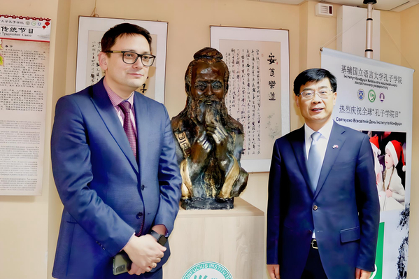 谢尔盖·索罗金陪同马升琨参观考察孔子学院并与师生代表交流座谈。座谈会由基辅国立语言大学中文教研室主任、孔子学院乌方院长尤利娅·柳比莫娃主持。孔子学院中方院长史亚军和远程中文教学项目教师代表以视频连线形式参加座谈会。史亚军向大使介绍了孔子学院的情况,对马升琨及使馆的大力支持表示感谢。马升琨对孔子学院的工作给予了高度评价,并对未来的发展寄予了殷切、美好的期望。