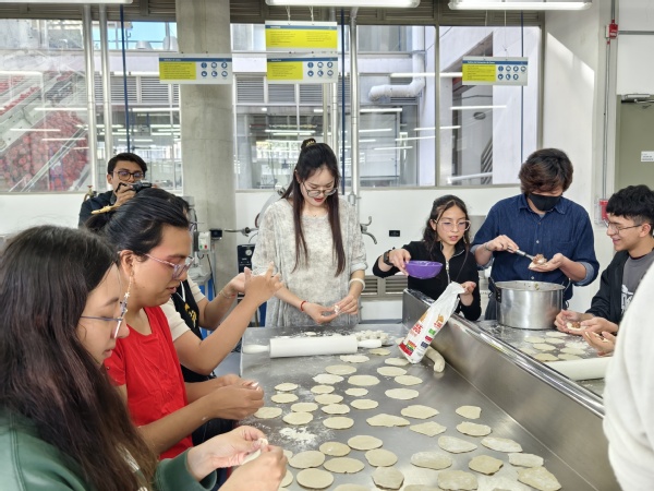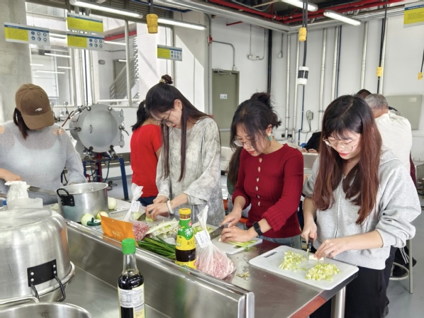 充满趣味的包饺子活动欢乐开启。大家围坐在一起,分工协作,有的揉面,有的擀皮,有的包馅,现场热闹非凡。形态各异的饺子在大家的巧手下诞生,每一个都饱含着欢乐与期待。当热气腾腾的饺子出锅,学生们迫不及待地品尝,纷纷竖起大拇指称赞味道鲜美,对自己动手包饺子的活动更是喜爱有加。