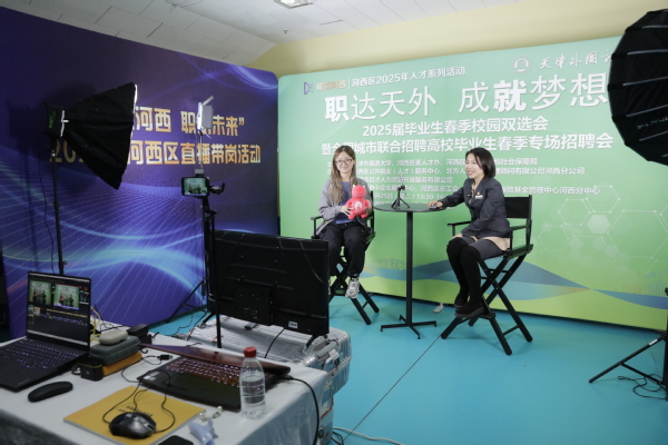 “AI模拟面试很适合像我一样性格比较内向的‘i人’,可以无限次模拟面试场景,还能一键生成面试报告,很方便。”活动现场,小张同学现场试用了学校引进的就业星“AI就业能力提升系统”。该系统帮助毕业生智能生成简历并精准进行诊断、润饰,模拟面试真题全面覆盖求职、考研、考公考编、教资等多类应用场景,数智人面试官真实、丰富,沉浸感强烈,可生成包含语言表达、逻辑思维、情绪管理等多项能力评估报告并给出改进建议,实现就业服务全流程数字化升级。双选会采用“线下对接+云端服务”双轨并行模式,通过河西区公共就业(人才)服务中心官方抖音号同步直播,企业线上实时解答求职疑问,覆盖更多潜在人才。